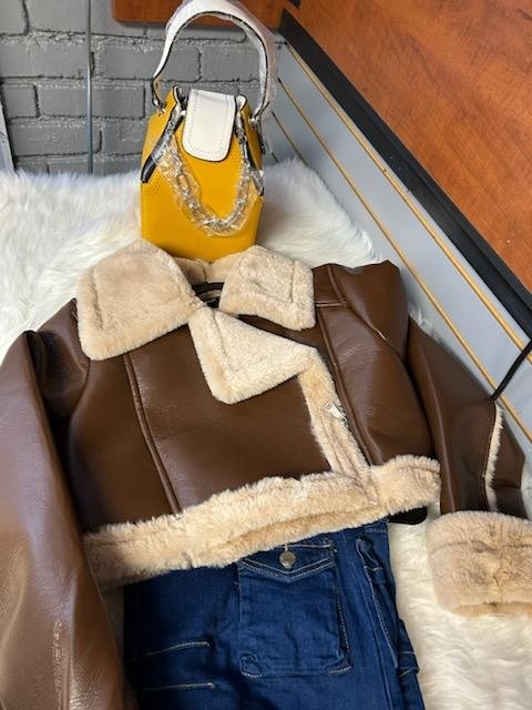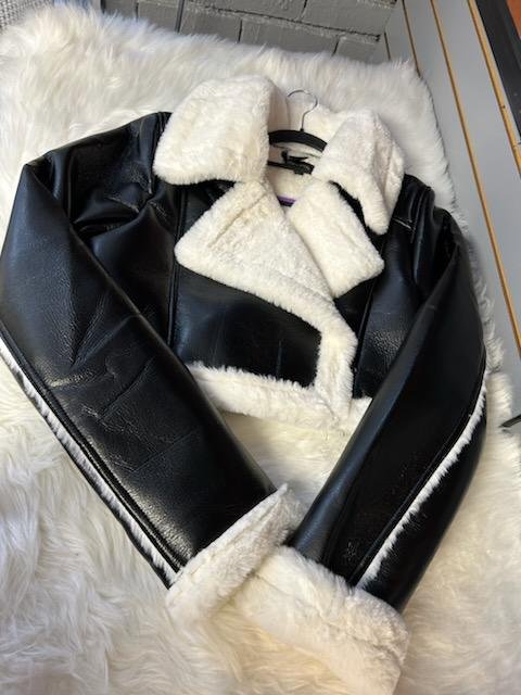 A nice leather jacket with a fuzzy, soft inside.